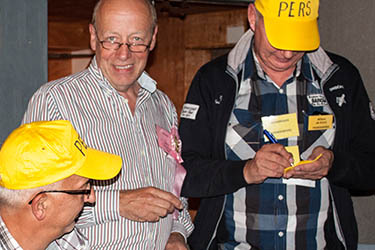 | deelnemers met respectievelijk de technicus, de majoor en de kolonel | ||